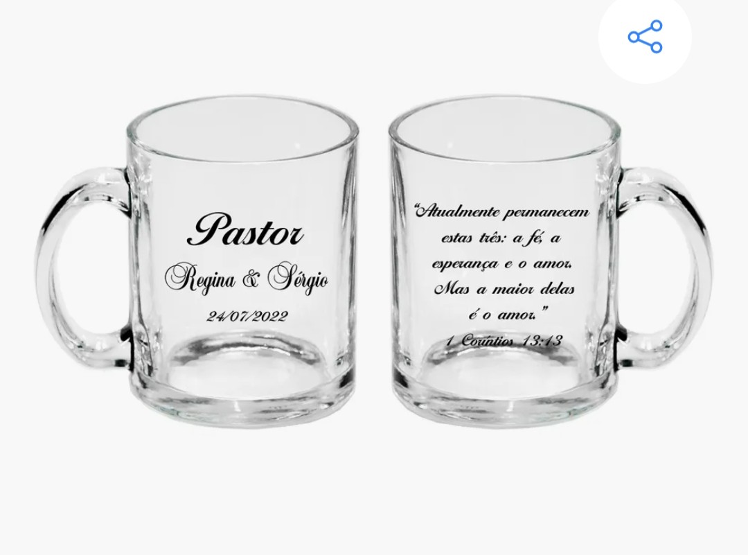 Vidro transparente, arte direta no produto, envie sua ideia de personalização pelo WhatsApp.